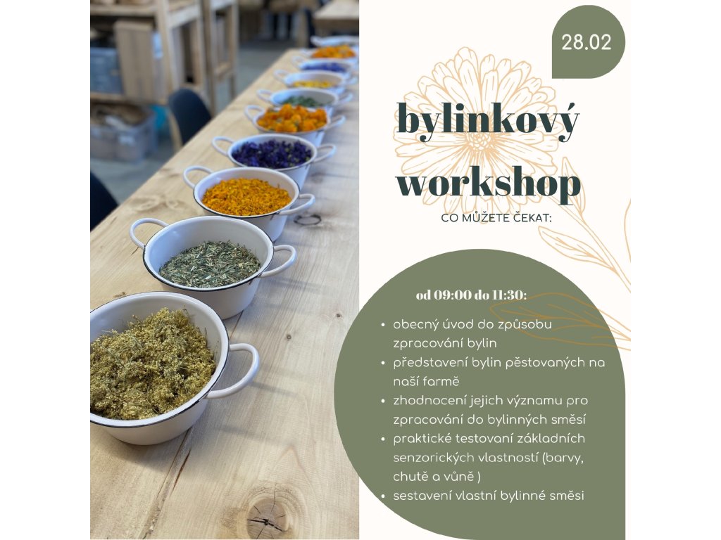 Ponořte se do světa bylin a jejich přirozené síly. Na bylinkovém workshopu se seznámíte se základními léčivými bylinami, jejich vlastnostmi a kombinacemi. Naučíte se, jak správně míchat čajové směsi podle chuti, ročního období nebo konkrétní potřeby těla.