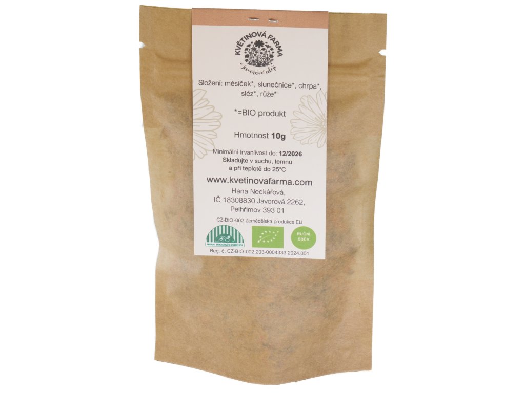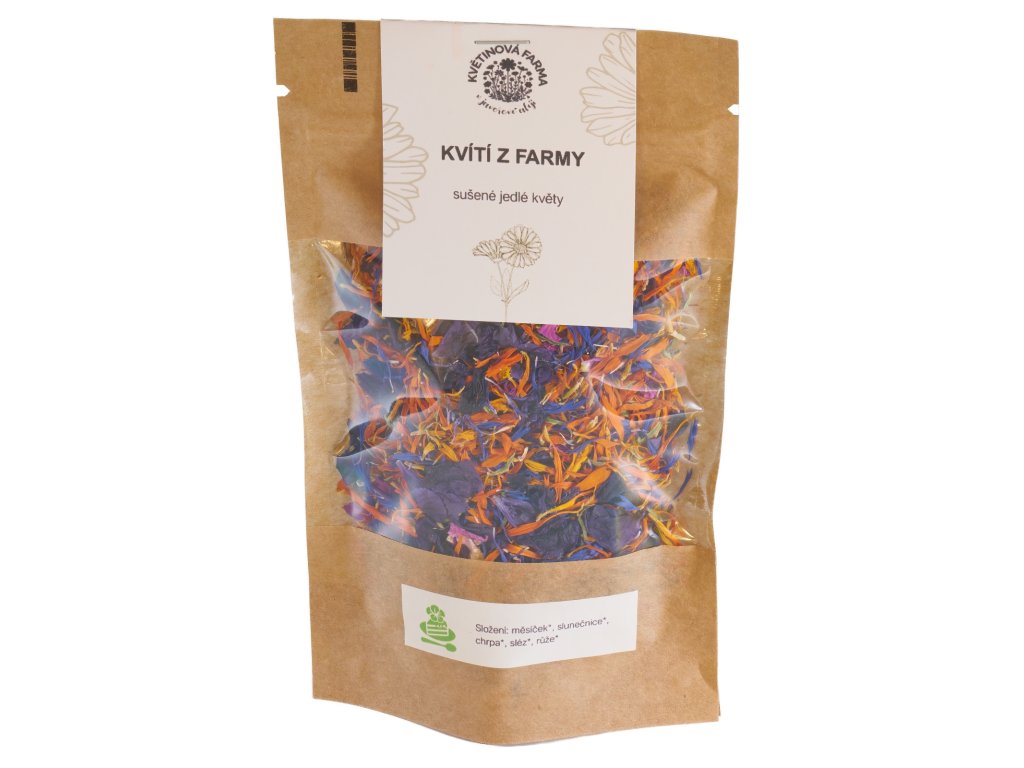 Každý květ byl pěstován ekologicky, bez chemie, a ručně sbírán na naší farmě. Květiny sušíme šetrně, aby si uchovaly svou barvu, chuť i výživové vlastnosti.
