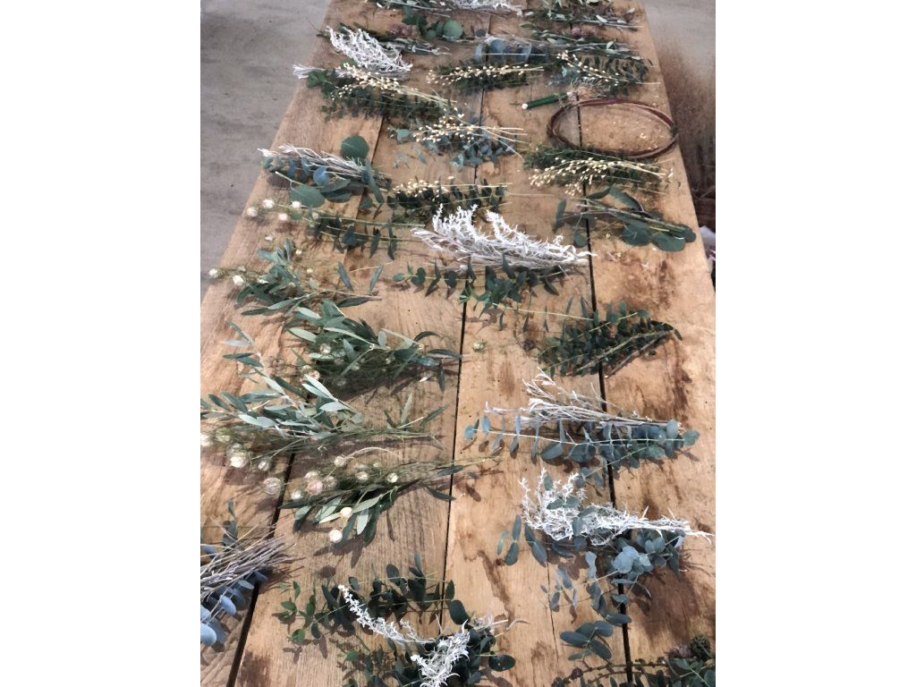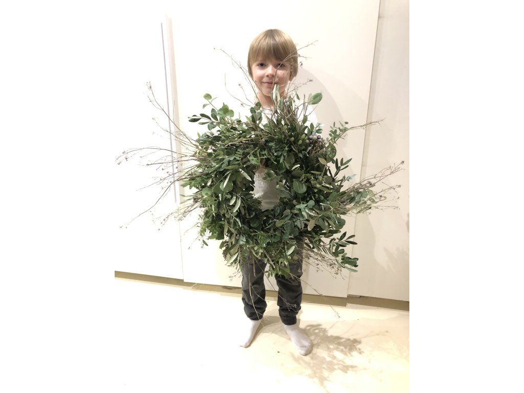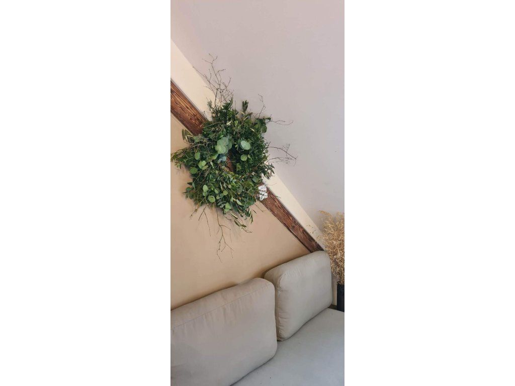 Velký věnec na zavěšení z mixu - eucalyptus, pistacie, mimosa, larix, abies,.. a další ingredience, co nám přijdou pod ruku, ze zahrady, foliovníku, natě po zpracování bylinek, jako šalvěj, oregano. :)